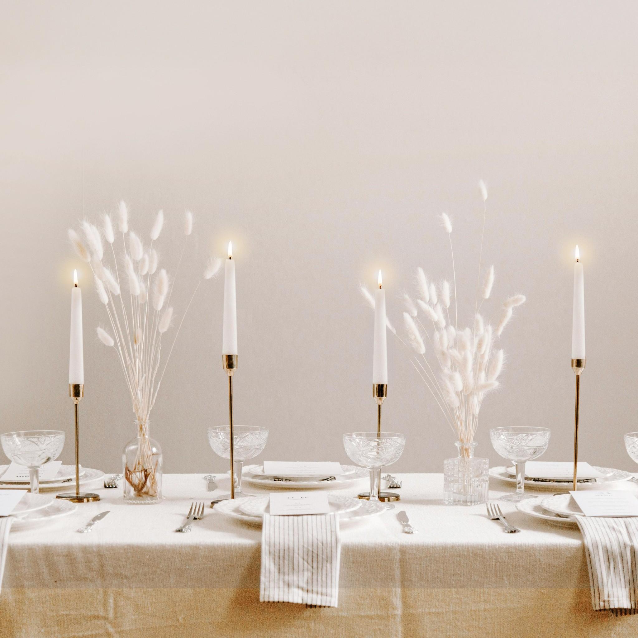 RESTAURANT-GRADE CANDLES. FOR LONGER BURNING TIME, CANDLES MUST BE IN A CONTROLLED ENVIRONMENT WITH NO VENTS AND WIND. CANDLES SHOULD ALSO BE SECURED IN THE CANDLE HOLDERS SO THEY STICK AND SIT STRAIGHT. OTHERWISE, THE CANDLE WILL BURN IN SHORTER TIME.